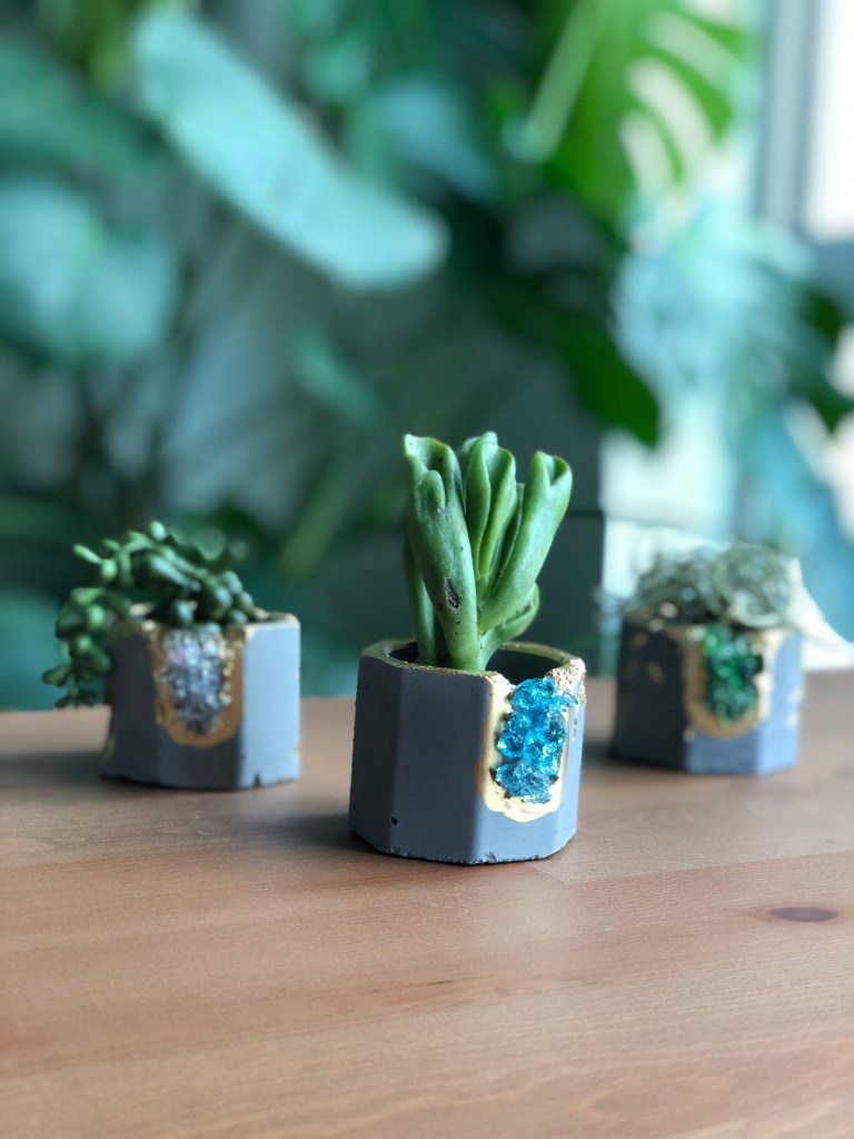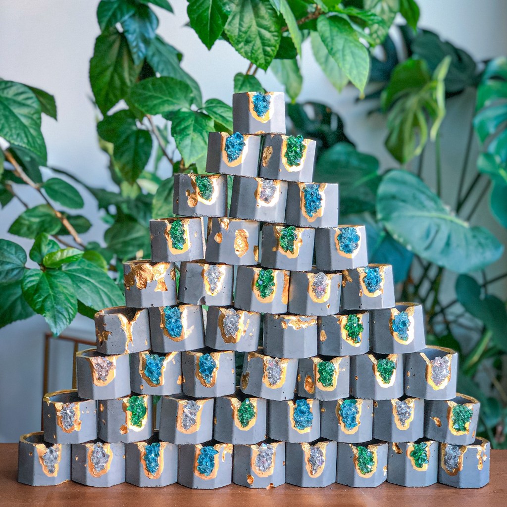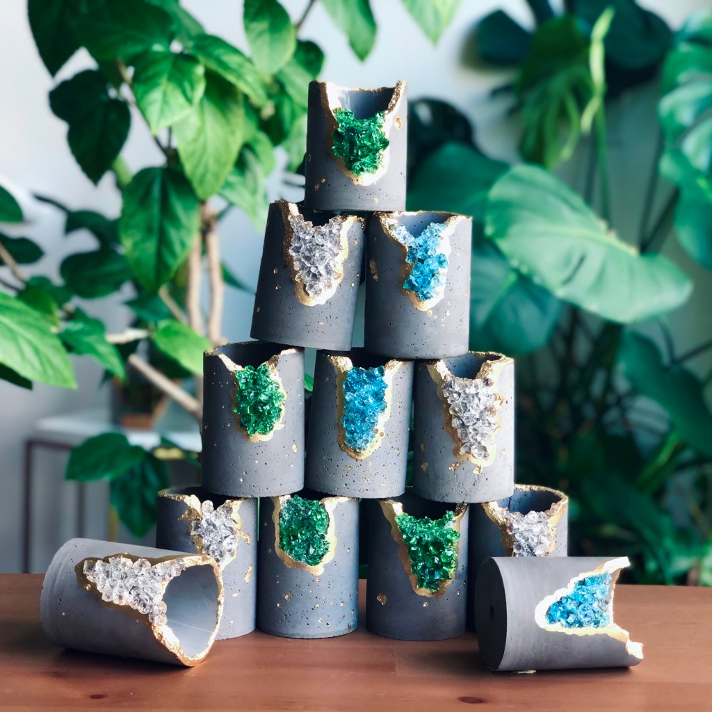 Hey! We are so happy you are here! Concrete 8 is a small Studio located in the heart of Miami USA. We make Beautiful Concrete Planters with Crystals for Succulents and other small plants.
