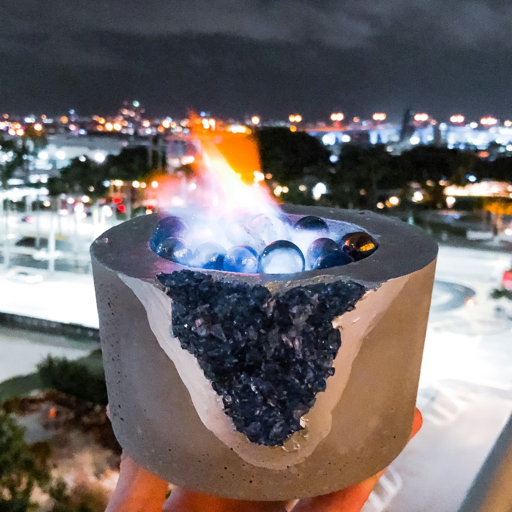 The Geode Crystals Fire Bowl is the perfect way to create ambiance anywhere. This hand-cast, the organic concrete vessel is made from natural materials, Minerals and Crystals that compliment any indoor or outdoor living space.